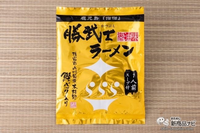 指宿のご当地ラーメン「勝武士ラーメン」「勝武士ラーメン」(内容量 116g/めん78g・スープ35g・削り節3g・希望小売価格 税込324円・発売中)は、天然砂むし温泉で有名な指宿(いぶすき)地方の新ご当地ラーメン。鹿児島県新加工食品コンクール優秀賞、鹿児島県特産品協会理事長賞を受賞するなど、県が認めたお墨付き商品である。