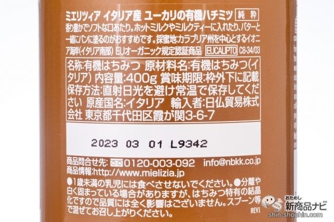 食品・飲料の輸入販売メーカー日仏貿易株式会社(東京都千代田区)は、ヨーロッパを中心に高品質な食材や飲料の輸入を行っている。今回新発売した『ミエリツィア イタリア産 ユーカリの有機ハチミツ』は、美味しく健康に良いものを食べたい…そんな人でもきっと満足すること請け合いの、まるでキャラメルのような上質なハチミツだ。詳しくチェックしていこう!