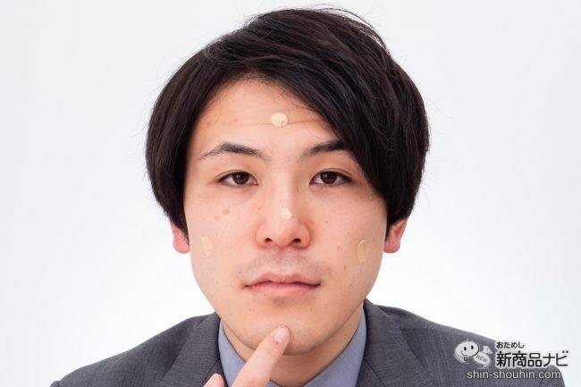 適量を指先に取り、おでこ、鼻筋、あご、両ほっぺの5か所に付ける。その後、指の腹を使いながら顔の外側に向かって伸ばしていけばOKだ。