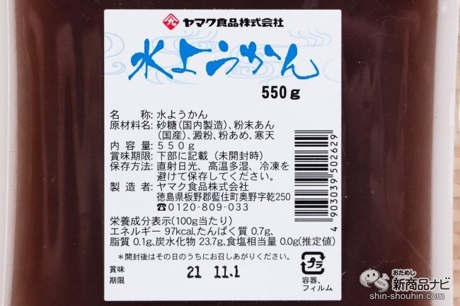 ヤマク食品の『水ようかん』明治27年創業のヤマク食品株式会社(徳島県板野郡)は、味噌や加工食品などの製造販売を手掛ける味噌メーカー。近年は、味噌づくりだけなくわらび餅などの菓子製造にもチカラをいれているそう。