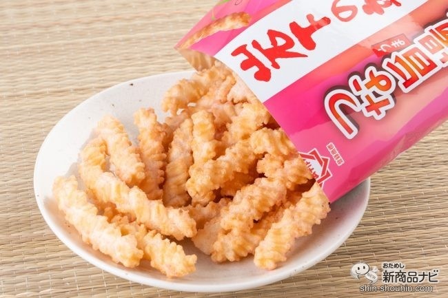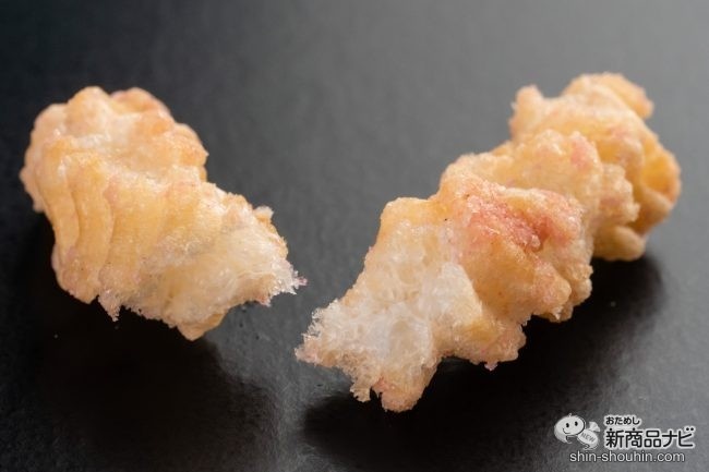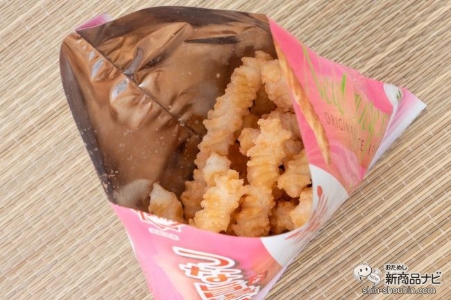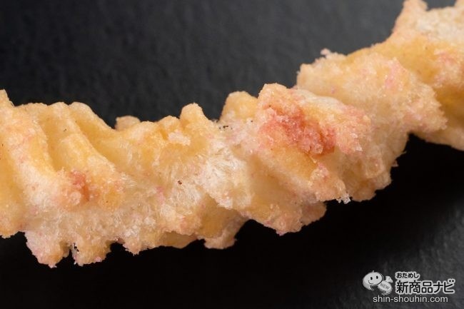 ネジネジとしたこんがり美味しそうな見た目だが、特に変わったところはない。「岩下の新生姜」を使ったシーズニングパウダーをまぶしてあるので、よく見るとややほんのりピンク色。