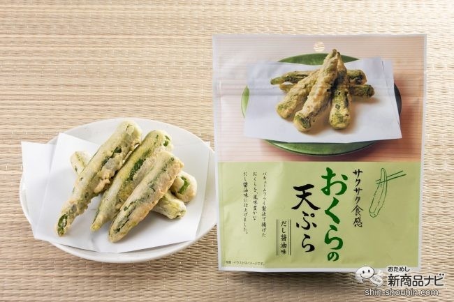 そんなMDホールディングスが半年前に発売したのは、免疫力を高める菌活で注目されていた“きのこ”を天ぷらスナックにした『しいたけの天ぷら』と『エリンギの天ぷら』。その見た目のインパクトと、食べてみないと想像できない味で人気シリーズに。そこで今年の春、2021年3月1日に新発売されたのが『おくらの天ぷら』だ。