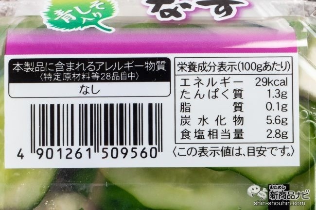 パッケージは、なすが映える紫色を基調としたシンプルなデザイン。商品を手に取るだけで、涼しげでさわやかな雰囲気を感じられる…! 賞味期限は製造日より冷蔵庫で7日間、冷やして食べるのがポイントのようだ。