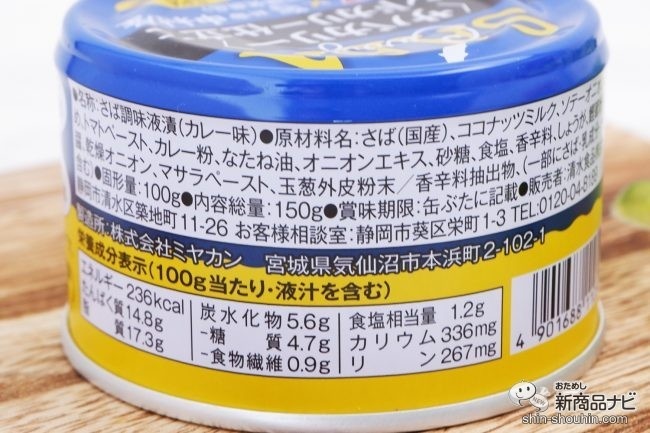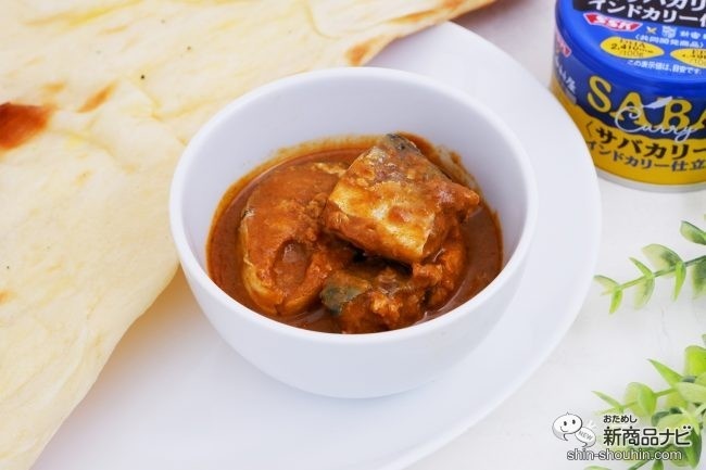 青い缶は『サバカリー インドカリー仕立て』(150g・参考小売価格 税込324円)。