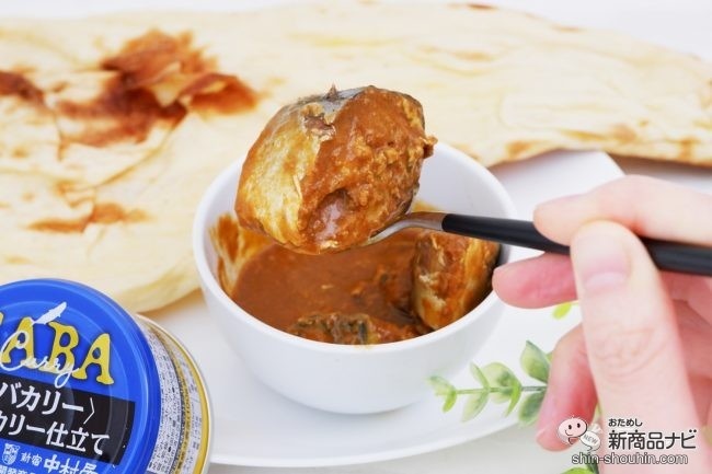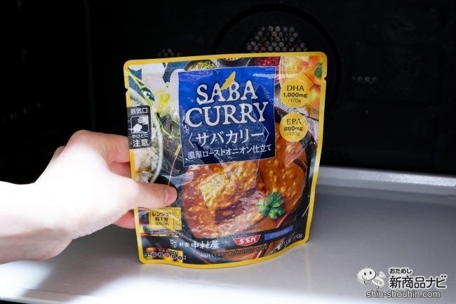 青いレトルトパウチは『サバカリー 濃厚ローストオニオン仕立て』(170g・希望小売価格324円)。あめ色になるまでじっくり炒めた玉ねぎの甘みに、生クリームやココナッツミルクのコクが加えられている。新宿中村屋オリジナルのスパイスで芳醇な香りを加えて、大きなサバの切り身を煮込んだカレー。マイルドでスパイスの香りが際立つ、濃厚なインドカリーとなっている。