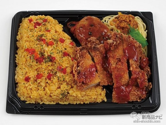 食べたらハマる“やみつキッチン”から、ミニストップ史上最大級のボリュームを誇る「ずっしり極!」シリーズの最新作。大盛り“カレーピラフ”とジャーマンカレーソースをからめた揚げ鶏に、カレー風味のハンバーグ・パスタなど、複数のカレーメニューが楽しめる。カレー好きな人のための“カレーづくし”弁当。