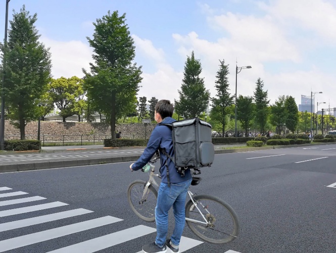 ・ヘルメットと配達バッグを実際に着用して講習今回の配達員を対象とした交通安全イベントは、そんな状況を打開するべく開催されるのかもしれない。この交通安全イベントは配達員が実際に配達に使用している自転車で集まってもらい、ヘルメットと配達バッグを実際に着用して講習を受けてもらうという。