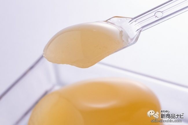 するっとスプーンが入り、断面がキラキラしている。果汁が滴ったようなシズル感がたまらない…!