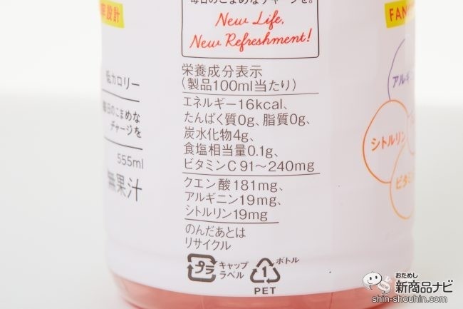 555mlなのでたっぷり水分補給ができるのもグッド。記者的には、入っている成分的にもさわやかな味わい的にも、たくさん汗をかいて水分を失ってしまうお風呂上がりなどにゴクゴク飲みたくなるようなドリンクだった。