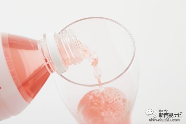 どこにでも馴染みそうな白をベースとしたパッケージからは、アセロラとレモンのフレーバーの赤いドリンクがちらり。コップに注ぐと、フルーティーな甘い香りが漂ってきた。