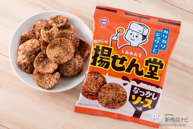 『揚げせん堂なつかしソース味』は、コンビニにて5月より先行発売中。懐かしさ感じる人も、新しさ感じる人もチェックしてみて!