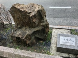 玉川上水脇の、太宰が発見された場所に「玉鹿石(ぎょっかせき)」の小さな石碑が置かれている。この石は、太宰の出身地・青森県北津軽郡金木町(かなぎまち、現・五所川原(ごしょがわら)市)名産の石だという。