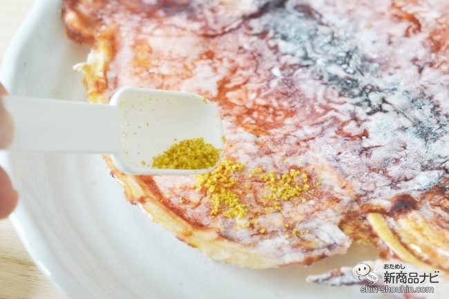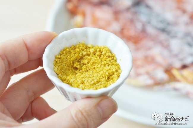 次に同社おすすめの、カレーパウダーと粉チーズを1対1の割合で混ぜて振りかける食べ方を聞いたので、試してみたい。
