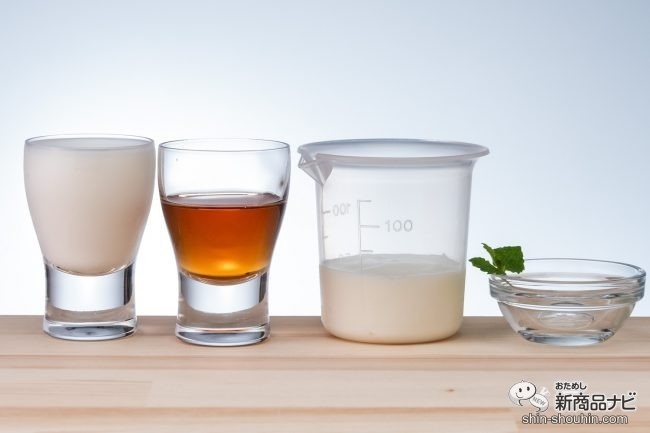 次は、乳製品を使って簡単ラッシーを作ってみる。用意する材料は、「山ぶどう味」大さじ2・プレーンヨーグルト50ml・牛乳50ml・ミントなどお好みで。