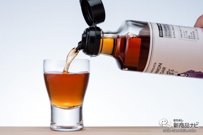 琥珀色のような美しい色開封前に冷蔵庫でよく冷やした「山ぶどう味」から開封だ。中ブタを外し中身をグラスに注いでみると 、甘酸っぱい香りに誘われてグッと飲み干したくなる。