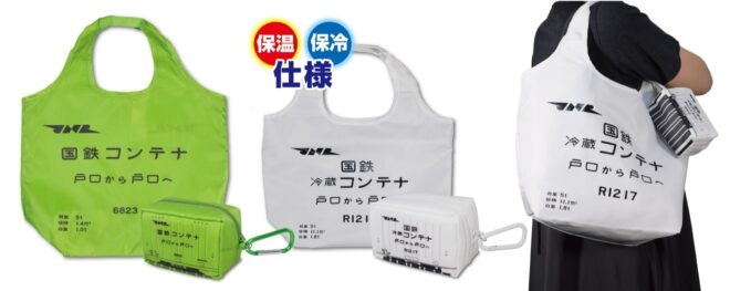 さらに、昨年発売されたJR貨物の19Dコンテナと18Dコンテナをモチーフにしたエコバッグ『エコンテナバッグ』の第2弾として、国鉄6000形コンテナと国鉄冷蔵コンテナの2種類が新たにラインナップに加わりました。