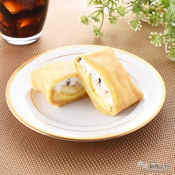 もちもち食感の生地にバナナ、カスタード、ホイップクリームとサクサク食感のチョコパフを包みこんだクレープ。