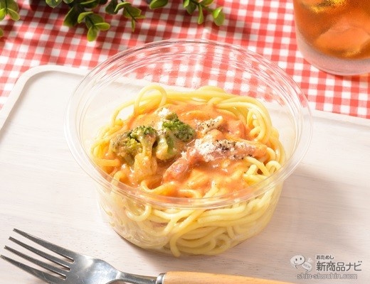人気パスタ店「ポポラマーマ」監修。もちもちパスタに辛みがきいたトマトベースのレッドカルボナーラ=「レッカル」が冷たくなって登場。