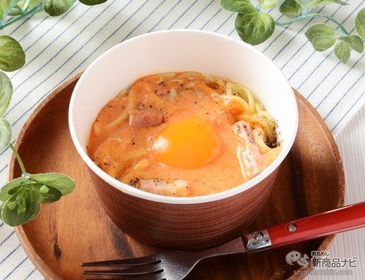人気パスタ店「ポポラマーマ」監修。もちもちパスタに辛みがきいたトマトベースのレッドカルボナーラ=「レッカル」が登場。