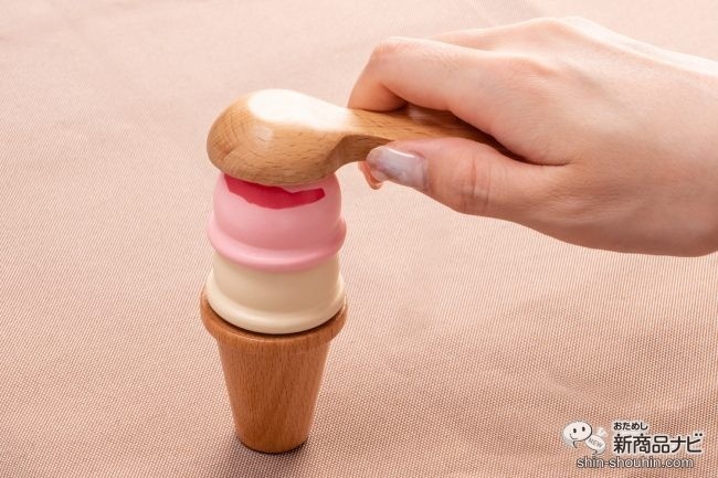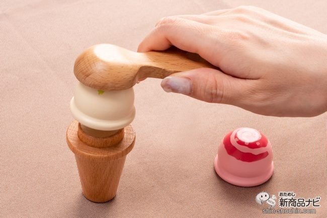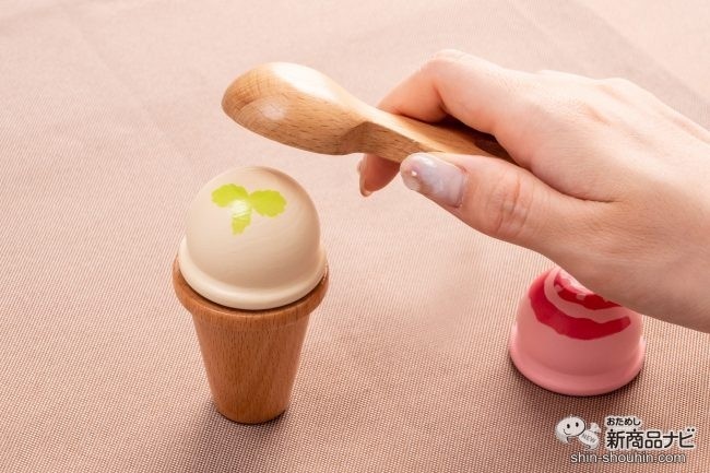 サーバーをアイスクリームに当てると「カチャッ」と引っつく。そのぬくもりある木の音もまた、耳障りが優しくて心地よい…。