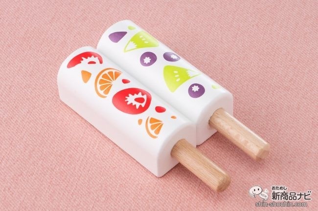 もうひとつはフルーツアイスバー。真ん中がマグネットでパキッと分かれるので、半分こして分け合いながら、仲良く美味しく楽しめる!