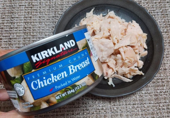 コストコのチキン缶が優秀。ヘルシー、ボリュームたっぷり、日持ちよし。