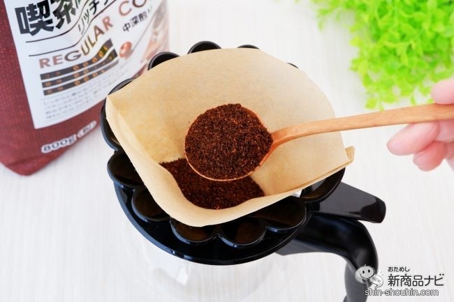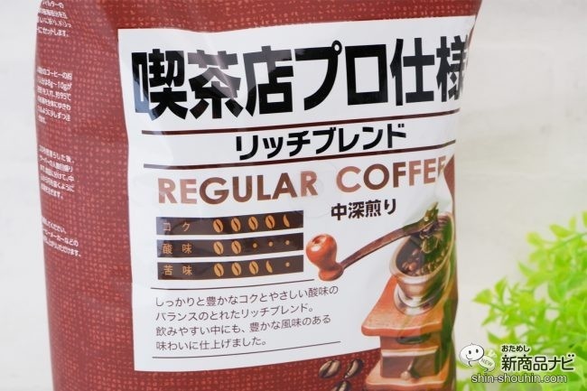 今回ご紹介するのはブレンドコーヒー『喫茶店プロ仕様リッチブレンド』(800g・中細挽き・参考価格 税込900円)。すでに豆を挽いてあるタイプで、ドリップ向きの挽き目である中細挽きとなっている。800gと大容量なので、日常的にコーヒーが欠かせない人や、コーヒーを淹れる時間もしっかりと楽しみたい人におすすめ。