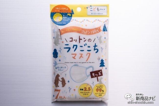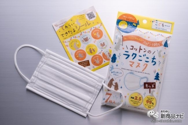 『コットンのラクごこちマスク 子どもサイズ』(7枚入り・サイズ 約125×85㎜・価格 税込327円/編集部調べ・発売中)は、小さい子どもでも楽に着用できるノンワイヤータイプ。