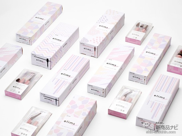 テスコムの新ブランド「elims me」は、ペールトーンのメルティピンクカラーをメインに、ほっとするラテのようなラテホワイト、濃厚かつヘルシーなセサミブラックの3色展開となっている。(製品ごとにカラー展開は異なる)