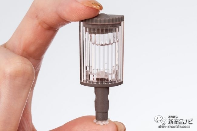 今回使用するカラーはくすみピンクがかわいいメルティピンク。径は26mmで細めタイプ。ボディもスリムで持ち運びしやすそう。海外でも使用できるため、旅行の際にも便利! ボタンはぷっくりしていて大きいため、ネイルをしていても押しやすい。こんな細かい気配りも嬉しいポイントだ。