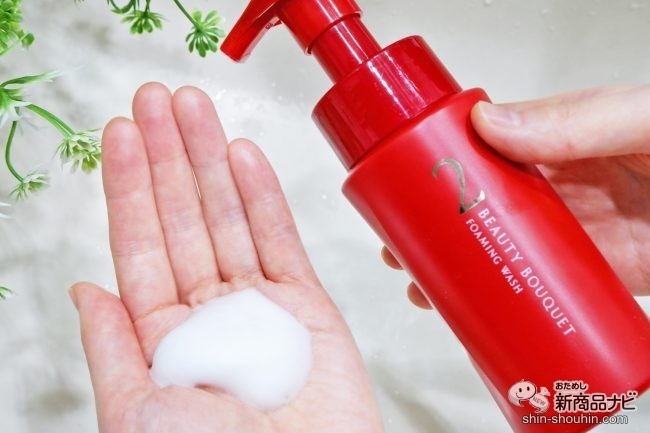 続いてのステップは洗顔。プッシュするだけでキメ細かな泡が出てくるのがとても便利。しっとりとした柔らかな泡は、肌にのせてもツッパリ感なく、優しく汚れを落としてくれる。