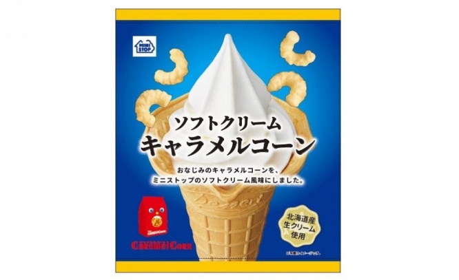 ソフトクリームと同じ「北海道産生クリーム」を使い、ミルク感たっぷりのソフトクリーム味を再現。ふんわりサクサク、そしてすうっととろける東ハトの人気商品「キャラメルコーン」をミニストップのソフトクリーム風味で楽しめます。