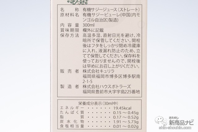また、甘味料やカフェインなども含まれておらず、サジーの栄養価をそのまま味わえるピューレタイプのドリンクだ。
