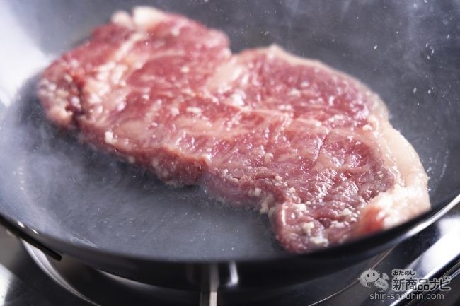 パッケージに書いてある「おいしいステーキの作り方」を参考に、お肉を漬け込んで焼いてみよう。