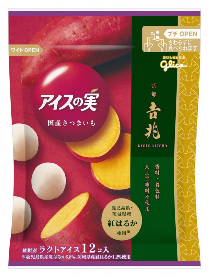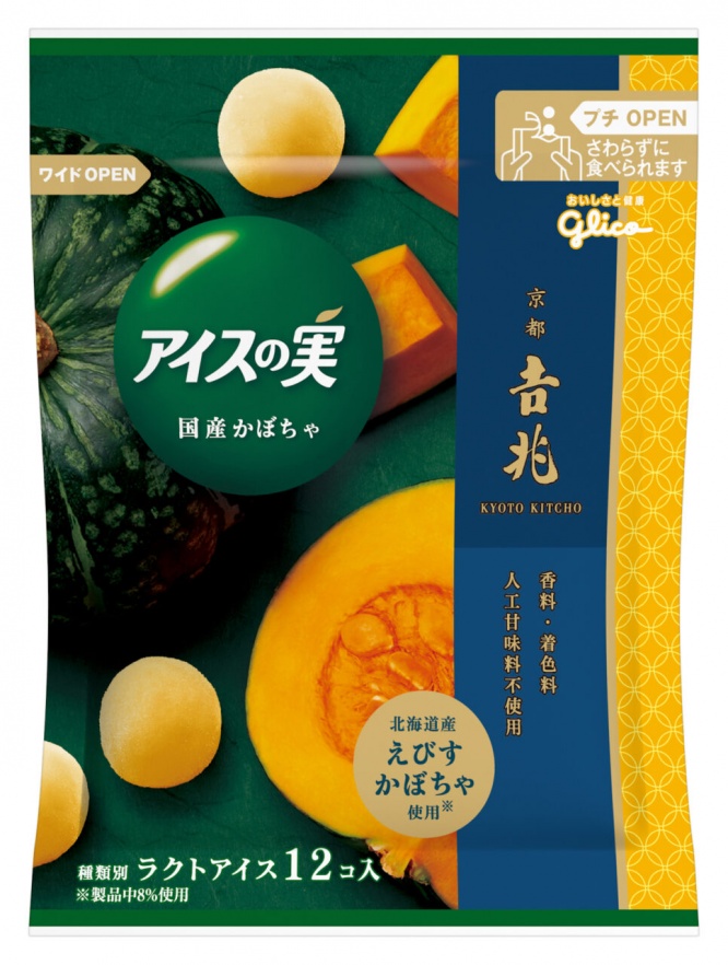 コンセプトを“世界中の子供たちに安心して食べていただけるアイス”とし、江崎グリコの技術により、自然食物由来の原料のみで仕上げた「アイスの実」が実現。味わいは、国産のかぼちゃ、とうもろこし、さつまいもの3種類となります。