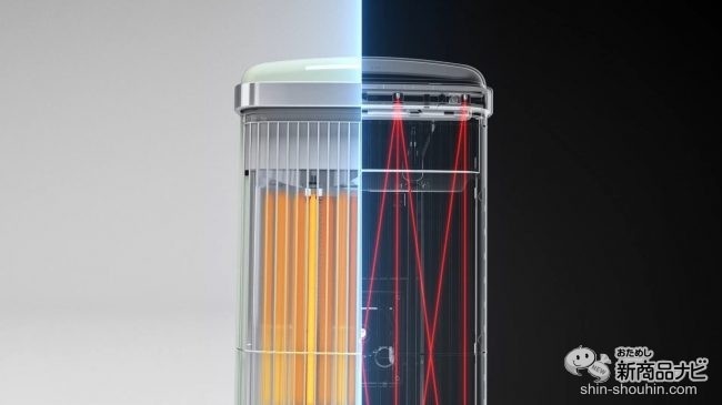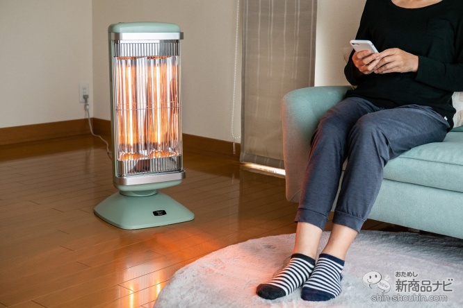 トーストをムラなくきれいに焼き上げる独自の技術を活かし、ヒーターの光る部分すべてがしっかり暖かい。中央部の発熱を抑え、ムラなく熱を届けるので、体を均一に暖めることができる。広範囲を0.2秒という瞬時に暖めることができるので、帰宅後の寒い時でもすぐに暖まれるという画期的なヒーターだ。