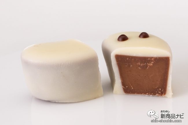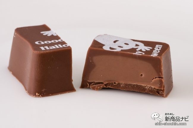 まずはアーモンドジャンドゥヤ入りのおばけチョコレート。ジャンドゥヤとは、焙煎したナッツ類(ヘーゼルナッツやアーモンド)のペーストとチョコレートを練り合わせたものを言うそうだ。「おばけだぞ~」と遊び始めた子どもたちは、溶けて指に付いたホワイトチョコレートをぺろり。「うんま~!」とすかさずひと口でぱくり! アーモンドといってもクセはなく、周りのホワイトチョコレートがふわ甘~い。くちどけもなめらかで、まさに子ども好みの味わいだ。