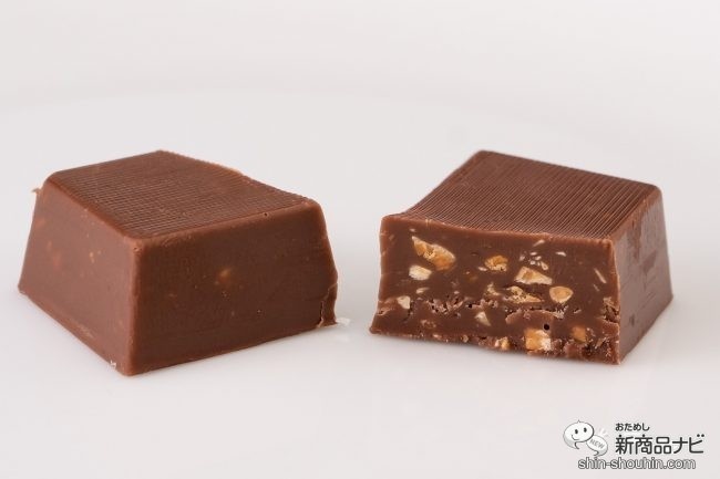 最後はクラッシュしたローストアーモンド入りのミルクチョコレート。チョコレートのねっとり濃密な食感の中に、時折感じるローストアーモンドの歯ごたえと香ばしさ。この味の奥深さをまだ分からないであろう子どもたちには、もったいないから記者が食べちゃお!