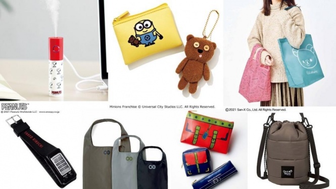 注目は、スヌーピー卓上USB加湿器(SPRiNG 2021年3月号)通常価格1460円→730円、ミニオンティムのミニチャーム&ボブのポーチ(sweet 2021年3月号)1180円→591円、リラックマの洗えるエコバッグ2個セット(steady. 2021年3月号)1250円→625円。