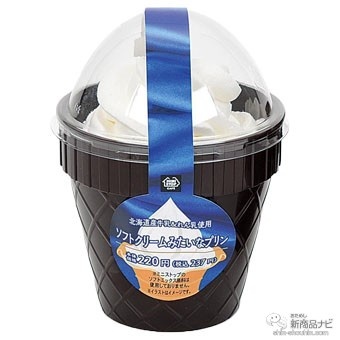 北海道産牛乳を配合したミルクプリンに、北海道産練乳と純生クリームを配合したコクのあるホイップクリームを合わせた、まるでソフトクリームみたいなプリン。