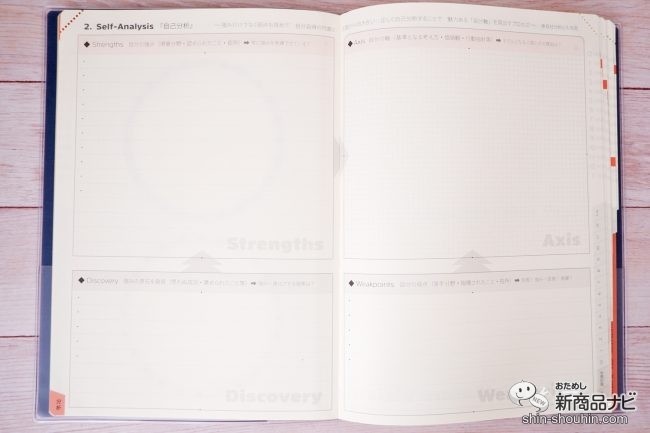 自己分析のページ自分の強みや弱点を可視化することで、自己認識力を高めていこう。