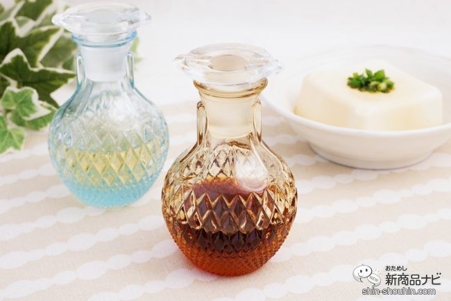 スカイブルーに酢、アンバーにしょうゆを入れてみた。色別に調味料を入れて、食卓に置いておくのも分かりやすい。