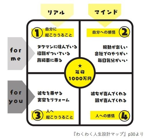 マンダラチャートは元からあるフレームワークですが、自分としては「人生設計マップ」という名前にしたいなと。「マップ」というのは、設計図と冒険の地図という意味です。