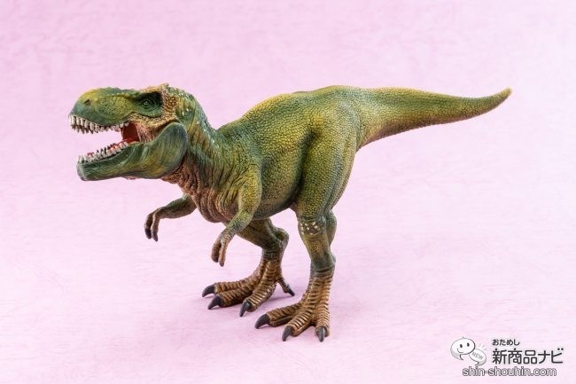 まずは『ティラノサウルス・レックス(ダークグリーン)』(価格 税込2,950円/編集部調べ・発売中)。恐竜の王者といえばティラノサウルス! 鱗のような肌に大きな下顎、鋭い牙が迫力満点。恐竜ファンならば、小さめの目とその意外と優しい眼差しが再現されているところにもぐっとくるかもしれない。