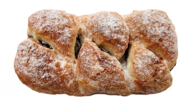 表面をカラメリゼしたデニッシュ生地にコクのあるクリームをサンドした菓子パン。
