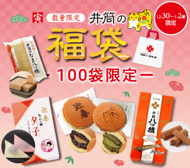 八ツ橋などを製造・販売する「井筒八ッ橋本舗」は、2021年12月17日20時から、オンラインショップにて福袋を販売します。限定100袋です。