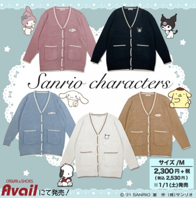 しまむらグループのカジュアルファッション専門店「アベイル」では2022年1月1日から、サンリオとコラボしたアイテムが多数販売されます(1日は休業の店舗もあり)。