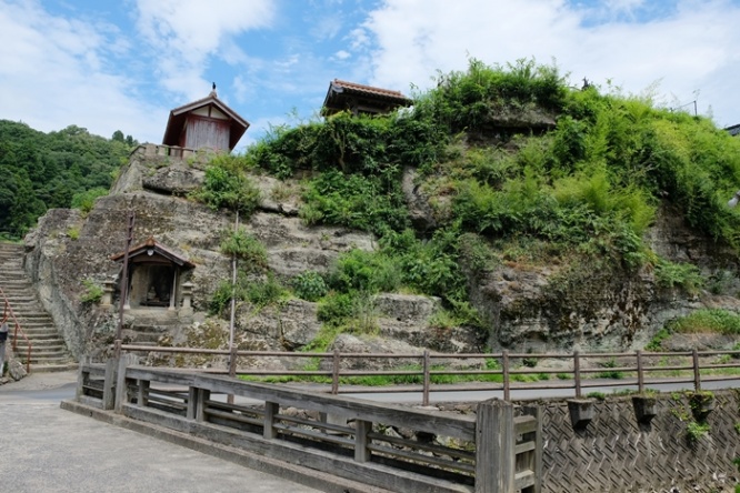 大森地区を上から眺めてみたい方は、ぜひ観世音寺へ。大森の町を貫く通り沿いの岩盤の上に建立された寺で、石段の上からは「石見銀山遺跡とその文化的景観」を象徴する景観が眺められます。