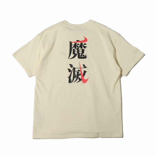 スニーカーの中敷きには、日本の古典的な絵画の上に”魔”、”滅”の文字を記載。さらにかかと部分にも鬼の刺繍が入った特徴のあるデザインとなっています。