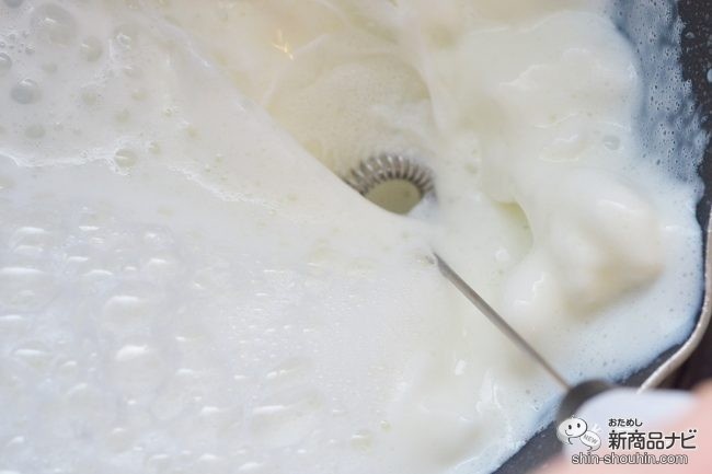 100均などで販売しているミルクフォーマーでOK、ふわふわの雪のような仕上がりになる。